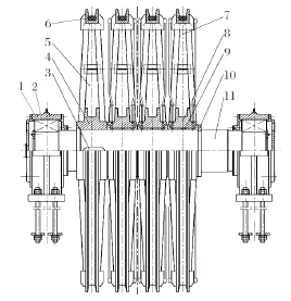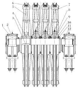 目前在用的多繩摩擦式提升機天輪裝置結構有兩種,普通天輪裝置和新型天輪裝置。